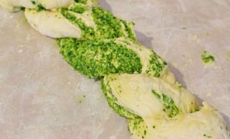 Сверху на тесто разложите равномерно зеленую начинку.