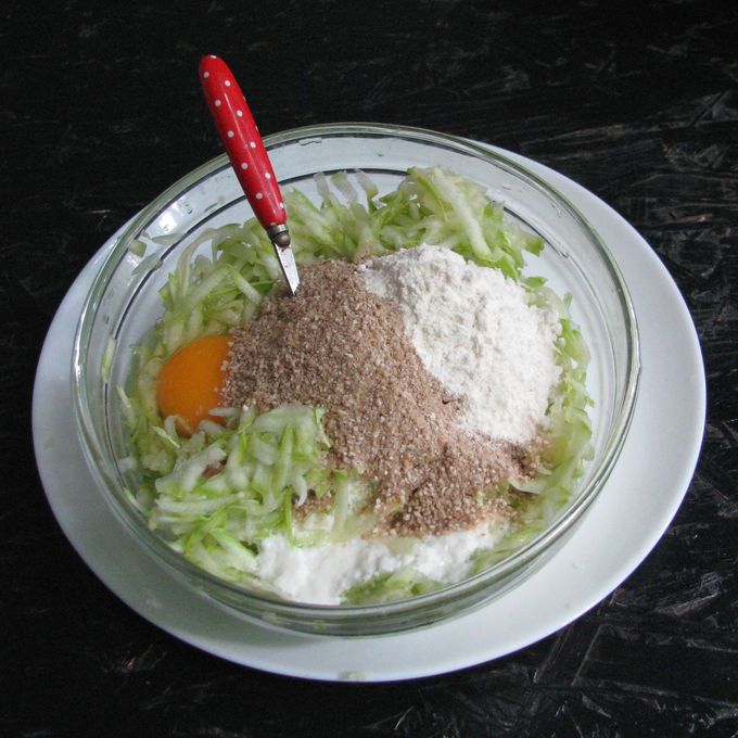 Тесто для оладьев из кабачков с гречневой мукой подсолите и поперчите на свой вкус.