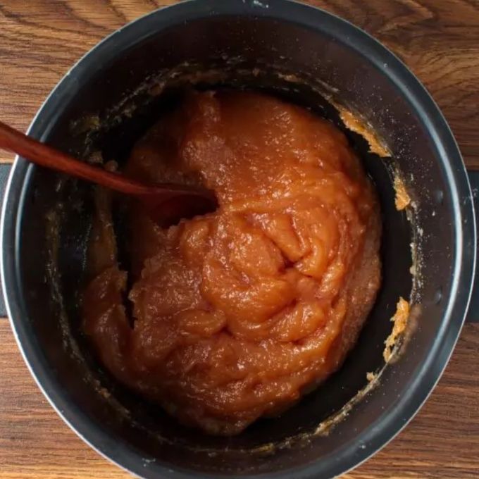 Поставьте кастрюлю на слабый огонь и варите около 1, 5 часов, пока она не станет очень густой. Вам нужно будет постоянно помешивать смесь сначала, чтобы растворить сахар, а затем время от времени.