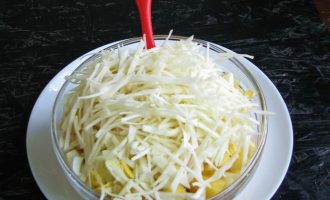 Заправьте майонезом, смешанным со сметаной и добавьте немного соли.