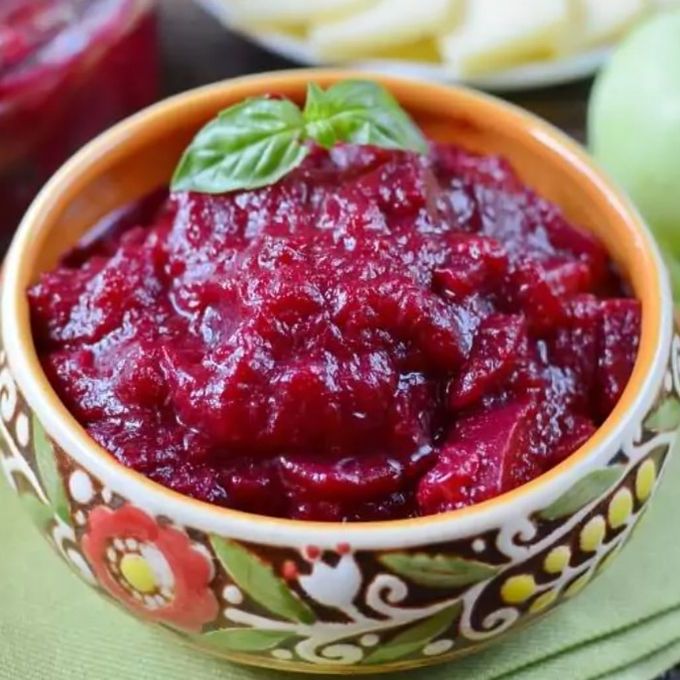 Оригинальный индийский соус чатни из свеклы и яблок имеет приятный оттенок цвета и сладости.