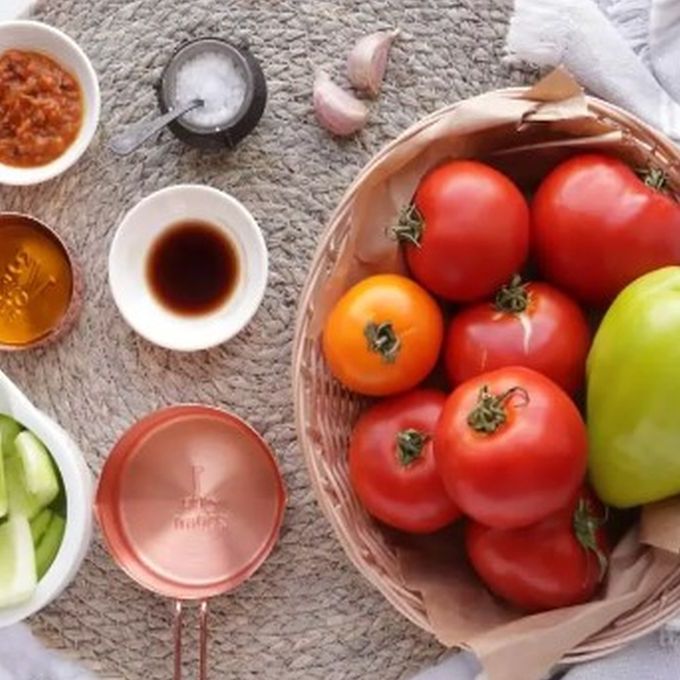 Этот суп-пюре гаспачо — идеальная летняя смесь овощей! Такой испанский суп-гаспачо готовится из спелых помидоров, огурцов, зеленого сладкого перца и свежего чеснока, в итоге получается невероятно вкусным для летнего обеда или ужина. Подается такой гаспачо в холодном виде.