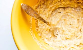 Подготавливаем необходимые продукты — моем, чистим и натираем картофель, репчатый лук трём на мелкой тёрке.