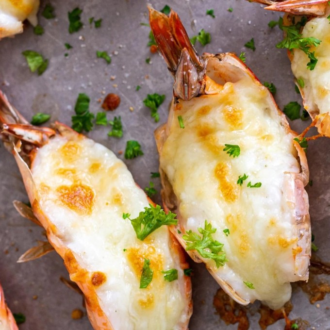 Если вам нужна особая закуска и вы любите морепродукты, то этот рецепт идеально вам подходит. Давайте узнаем как приготовить запечённые тигровые креветки с сыром. Сразу отмечу, что блюдо готовится очень просто и достаточно быстро. На всё вы потратите чуть больше двадцати минут.