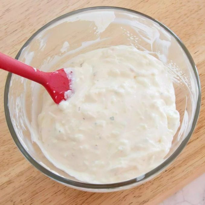 Затем на первом этапе приготовьте соус, где основными ингредиентами будет сыр пармезан, сметана, майонез, свежая зелень, а остальные приправы и специи, которые указаны в рецептуре.