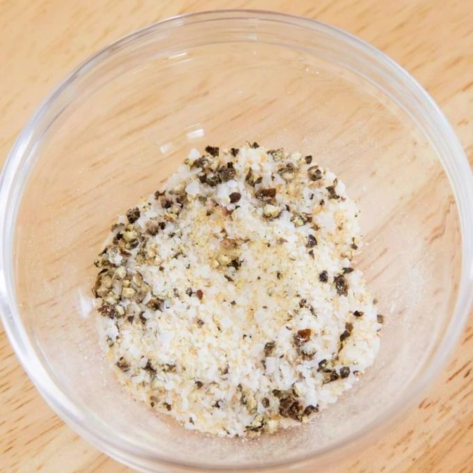 В небольшой посуде смешайте чесночный порошок, соль и перец. Хорошо перемешайте.