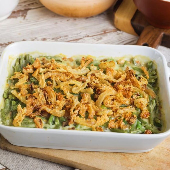 Эта аппетитная запеканка из зеленой фасоли, незаменимое блюдо для всей семьи. Блюдо готовится из зеленой фасоли, грибного соуса, жареного лука и приправ. Подавать эту ароматную, нежную и очень вкусную запеканку из зеленой фасоли следует в горячем виде.