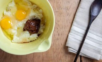 Вылейте жидкое тесто в смазанную жиром форму. Выпекайте в разогретой духовке в течение 45 или пока тестер не выйдет чистым.
