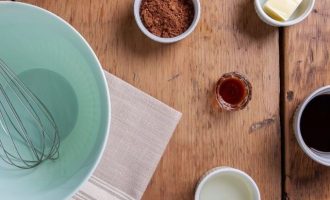 Для глазирования шоколадного кекса на пиве: в миске смешайте какао-порошок, масло, кукурузный сироп, пиво, экстракт ванили и соль.