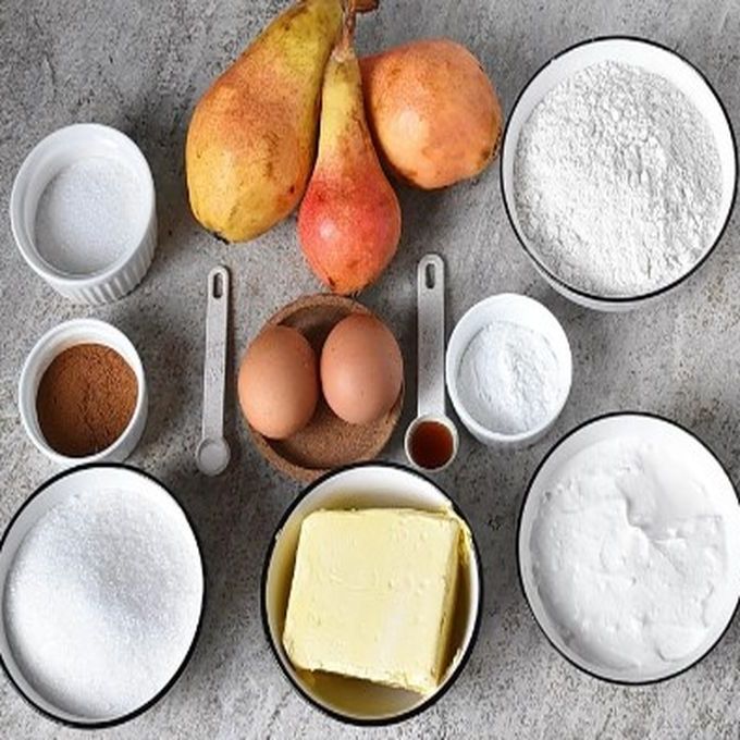 Подготовьте все ингредиенты для приготовления пирога с грушей и корицей. Муку просейте, сливочное масло размягчите, сахар возьмите лучше коричневый, он придает приятный вкус и цвет пирогу. груши очистите и измельчите.