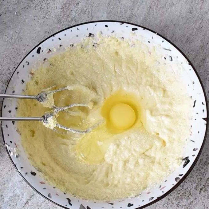 Добавьте 2 яйца по одному за раз, тщательно перемешивая после каждого добавления и соскребая массу со стенок миски по мере необходимости.