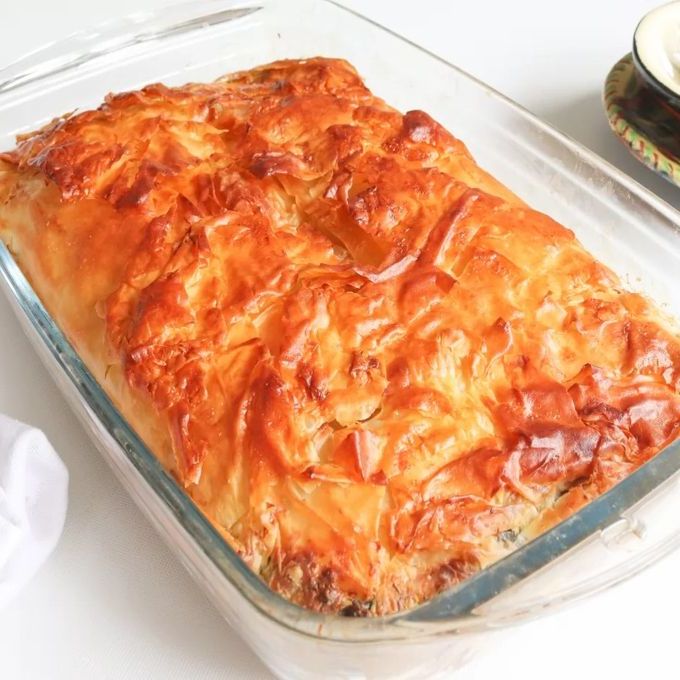 У меня сегодня вкусный пирог со шпинатом из нежных и хрустящих слоев теста фило и сочной начинкой. Готовить самостоятельно тесто фило (в него заворачивается начинка) для этого рецепта, довольно сложно, поэтому я использовала фило, купленное в обычном магазине. Это тесто имеет тенденцию легко высыхать, поскольку оно очень тонкое, поэтому во время приготовления пирога его следует накрывать слегка влажной тканью. В качестве начинки используется сыр фето в сочетании с творогом.
