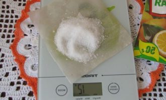 Лимонную кислоты насыпать отдельно на чистой салфетке или бумаге 15 грамм.