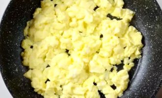 Яйца загустели — хорошенько перемешайте их и готовьте ориентировочно 2 минуты.