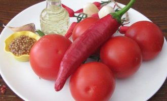 Для приготовления малосольных помидор с зеленью, подготовьте все компоненты. Помидоры нужно взять плотные, одинакового размера и чтобы были слегка сладкого вкуса. Для придания помидорам остроты добавьте французскую горчицу в зернах, чеснок, бальзамический уксус, да специи, которые указаны ниже в рецептуре.