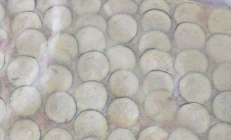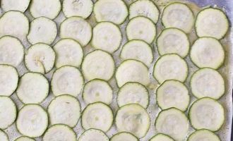 Сверху выложите кружочки кабачка, слегка перекрывая друг друга.