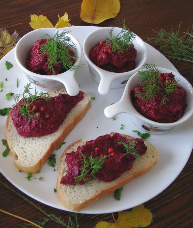 Свекольная икра с грецкими орехами — это отличная закуска, которая готовится легко, и получается очень вкусной. Это вовсе не новый рецепт холодной закуски, но все же остается востребованный и проверенный временем. Для ее приготовления свеклу следует заранее отварить или запечь в духовке. Причем уже подмечено, что из запеченной свеклы икра получается намного вкуснее и ароматнее. Свекольную икру с грецкими орехами вы можете приготовить заранее, а после подать даже на праздничный стол в мини посуде или порционно на ломтиках хлеба.